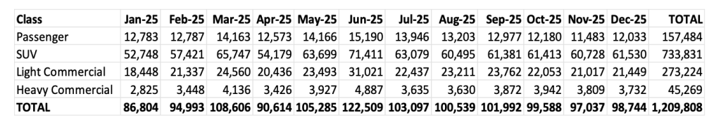 Australia’s vehicle market sold 1,209,808 units in 2025, underscoring the resilience of the automotive industry and reflects sustained consumer demand and the continued evolution of vehicle choice in Australia.