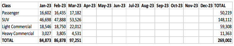 - The Passenger Vehicle Market is down by 4,817 vehicle sales (-21.9%) over the same month last year; the Sports Utility Market is up by 2,633 vehicle sales (5.2%); the Light Commercial Market is down by 2,182 vehicle sales (-9.0%) and the Heavy Commercial Vehicle Market is up by 384 vehicle sales (9.3%) versus March 2022.